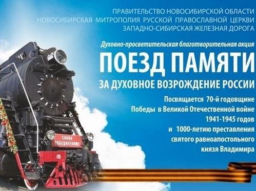 Акция "Поезд Памяти "За духовное возрождение России" посвящена 70-й годовщине Победы в Великой Отечественной войне 1941-1945 годов и 1000-летию представления (кончины) святого равноапостольного князя Владимира.